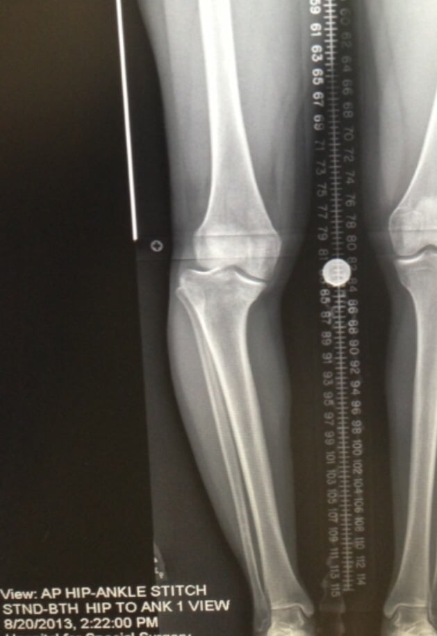 From birth I had a noticeable bow in my right leg, which was difficult growing up because other kids made fun of me. I learned to accept the way my leg looked because I didn't think there was anything I could do to fix it and my condition didn't pose a serious health risk or prevent me from being active at the time. In my late 20's my interest in fitness peaked and I decided that I wanted to be a personal trainer. I started working out in the gym and one day while on the treadmill, I noticed an unusual feeling in my right knee. I didn't think much about it initially but then it began to swell and feel uncomfortable. After seeking medical advice it was discovered that I had a torn meniscus. Upon further examination, they also found that there was a profound misalignment in my right knee that required attention. They informed me that if I allowed it to stay that way, over time it would lead to major mobility concerns.