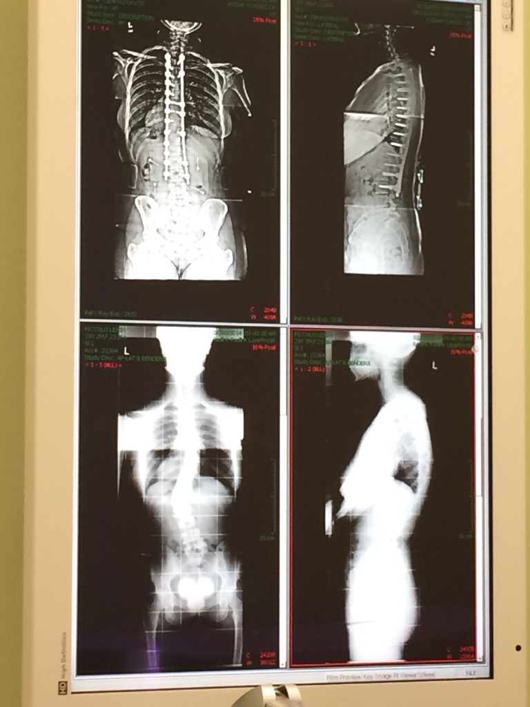 My name is Leigh and I want to share my journey through my spinal fusion surgery. I have had scoliosis since I was 13, and at the age of 30 I noticed it had been progressing more than I would like. With two curvatures in the 40 degree range I opted for a spinal fusion to correct my scoliosis which would fuse T3-L3 of my spine. While I did not get the surgery at HSS, it was very successful. I am nearly fully corrected for both my scoliosis and kyphosis. See pre and post op x-rays.