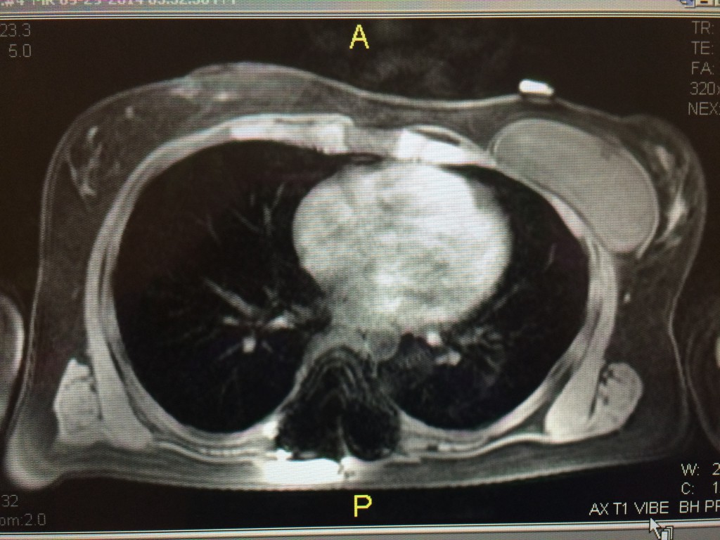 My issues started 3 months post-op with chest pain. I had severe chest pain on my left side only. I was supposed to begin Schroth PT around the time I began having pain. I was in and out of my surgeon and then a pain management doctor's office as I could not do my physical therapy activities without significant pain and discomfort. My pain doctor and my surgeon explained that in the de-rotation of my ribcage my cartilage that connects my ribs to sternum on my left side was inflamed due to the new position of my ribs. See section of my MRI of the difference in size of my left v right chest cavity - this is post op.