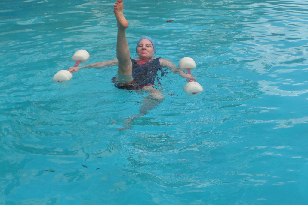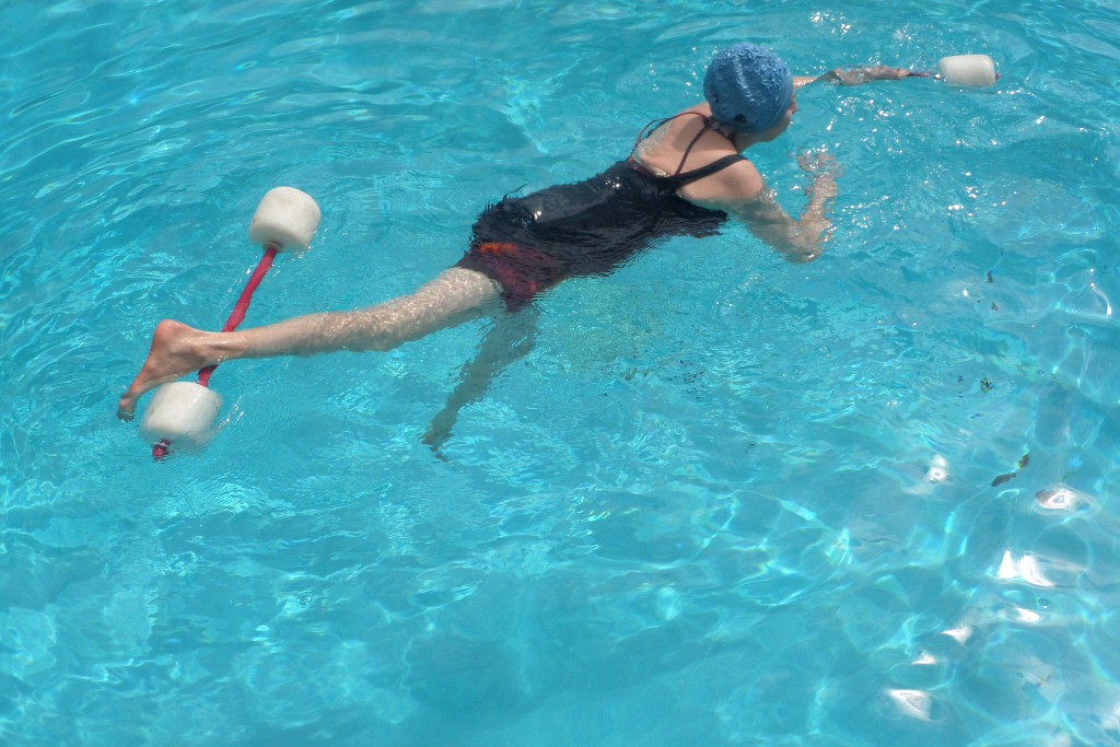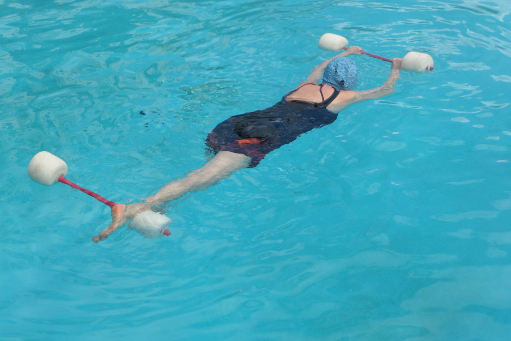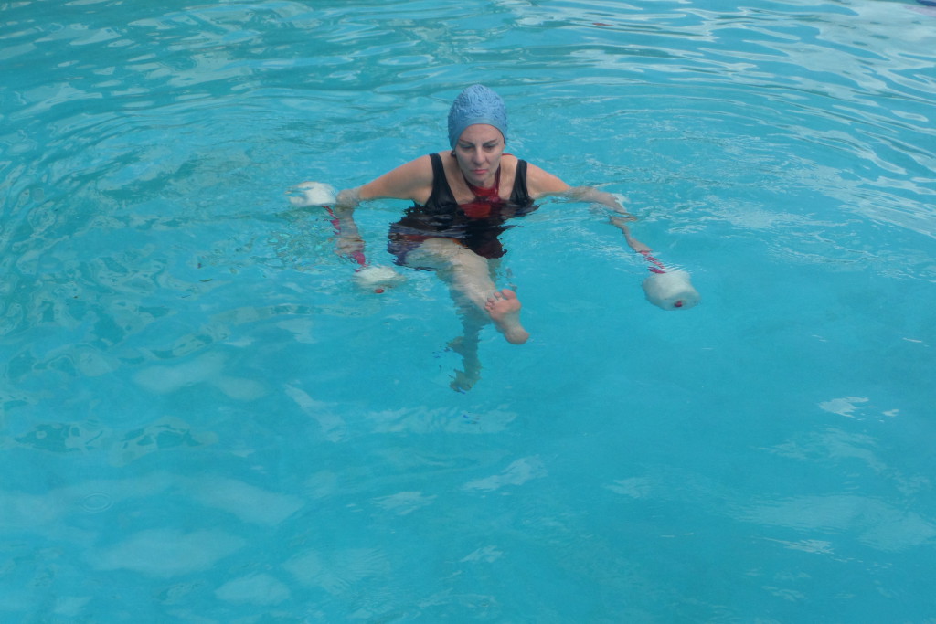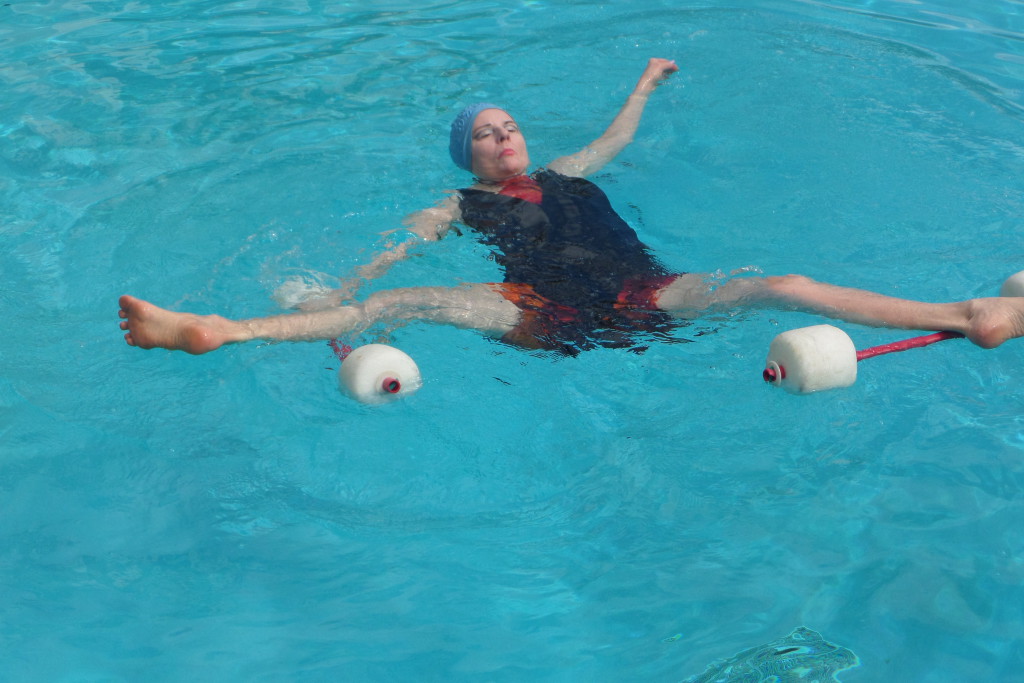Each week new progress is experienced. Three months later I performed 2 duet dances and started my swimming exercise which I do indoors in winter and there are photos attached here 9 months later in an outdoor pool in Florida which show some of the exercises I made up with floating barbells. Going into deep water I do bicycle movements and stag leaps as well as "cross country ski" movements.