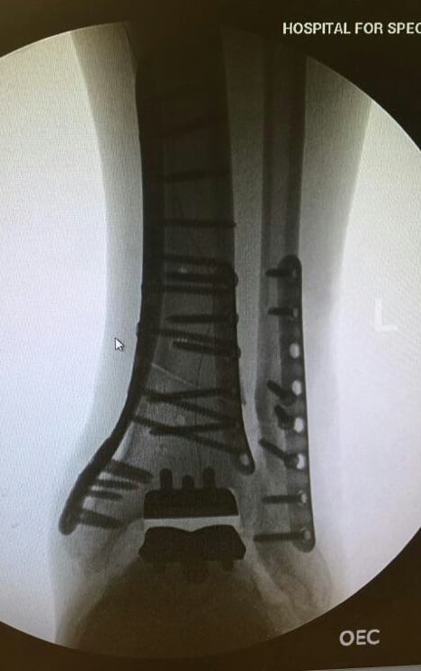 In January 2016, my life dramatically changed for the better thanks to the best HSS surgical team assembled to correct a severely painful, arthritic ankle and misaligned lower leg. Dr. Demetracopoulos is a highly skilled surgeon who performed a total ankle replacement (TAR) on my left ankle. In conjunction with the TAR, I was also the recipient of a much needed osteotomy to align my lower leg to the ankle implant so that my foot would point forward again and perfectly contact the ground in a level position to improve my gait.