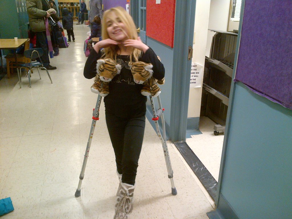 I've always loved to play sports. My main sport is soccer and I play 4 days a week 10 months a year and I also play on a travel basketball team. But I love just about any sport - tennis, skiing, waterskiing, baseball... I really love it all. On Super Bowl Sunday February 1st 2015 right after my 9th birthday, I went skiing with my Daddy. I was skiing down the mountain when I was pushed by another skier accidentally and ended up colliding with an unpadded metal pole in the ski run. Ouch! I was rushed to a trauma center with a severely shattered femur which needed emergency surgery to repair including putting a metal plate and 8 screws in my leg. I had a bunch of other complications and spent a while in the trauma center. After that I came back to New York City and was treated by Dr. Widmann. I was so used to doing so many sports and first I couldn't move then just walking was hard. I remember trying to move my leg a few inches took me a long time. I recovered from the break, but walked and ran with a limp and couldn't do what I used to on and off the field which made me sad. Over the course of the next year-and-a-half I have had surgery to remove the metal plate and 8 screws in my leg - Dr. Widmann did a great job - and had extensive rehabilitation as well as treatment for the scar. Some doctors had told me in the trauma center that I would never walk normally again but I didn't give up. Dr. Widmann help me regain my confidence and my physical therapist Josh was a rock star. I am back playing soccer, tennis, basketball and just went skiing for the first time in nearly two years since my accident. Everyone at Hospital for Special Surgery was nice, built my confidence, and gave me the best care. While I still have a big scar that reminds me of what happened, I'm stronger because of the experience. Nothing will stop me now! Thank you to everyone at HSS and especially to Dr. Widmann. Love, Caroline