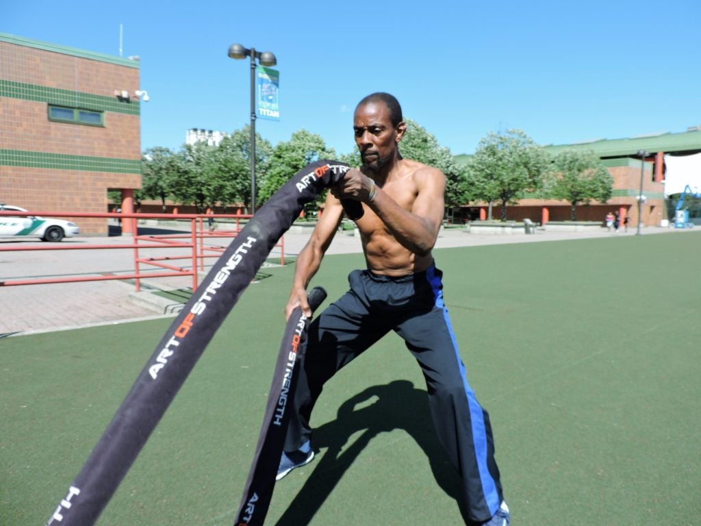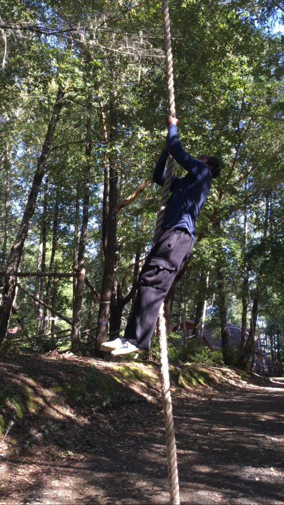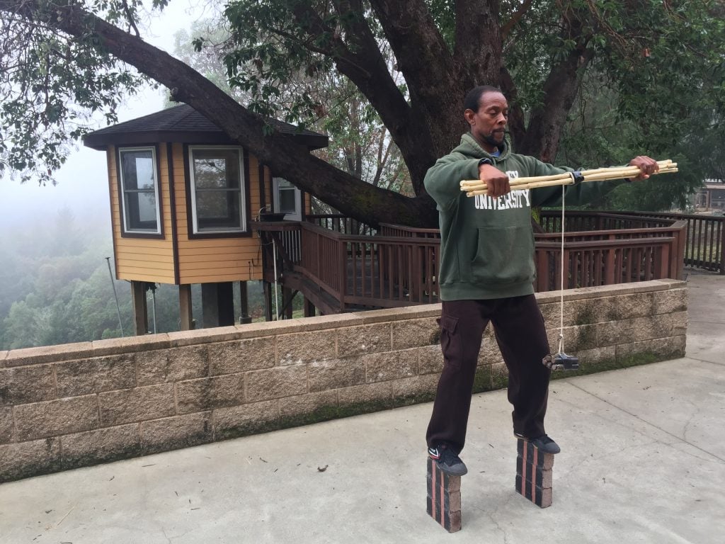The photos are of me training with a kettlebell and battle ropes the summer prior to leaving for California. The other photos are of me at the Retreat Center this past winter climbing a thirty foot rope and training on bricks. The video is a short drill sequence in reaction training.