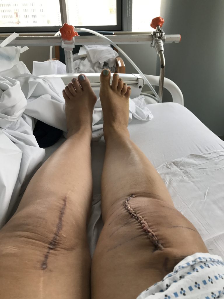 I hobbled into HSS 8 months ago. I was wearing gold platform shoes, but should probably have been in a wheelchair. My surgeon certainly thought I was going to be rolled into his office in one after he looked at my x-rays. I spent 10 years avoiding surgery- used Pilates, yoga, all kinds of supplements, acupuncture, and probably thousands of dollars in pain medication! Everything to stave off the inevitable! I chipped my knee in CBGBs of all places, the punk rock capitol of the world, just before I launched myself into a very remarkable career in the music business, touring the world with rock and roll bands like REM & Beastie Boys.
