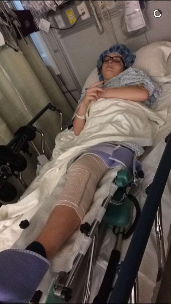 Competition was in April, I had to relearn all 5 dances. On March 20, 2015 I was at my dance studio going through our big group routine. I had to go from one side of the room to the other and I was always late. I had to speed it up my transitioning for the routine and when I did I placed my left leg and my knee popped out. Lucky when I hit the floor it popped back in. I was in pain and I was so devastated. I called my dad and he brought me home. The next day I was brought to the hospital and my mom called to make a doctor's appointment. My doctor realized something was wrong and he transferred me to the surgeon he works with. I was nervous to have a new doctor especially since he was a surgeon. The surgeon sent me to physical therapy, but this time my knee kept dislocating. My surgeon informed me that I have patella alta and trochlear dysplasia, that was the reason why it kept dislocating. We scheduled an MPFL reconstruction for December 30, 2015.