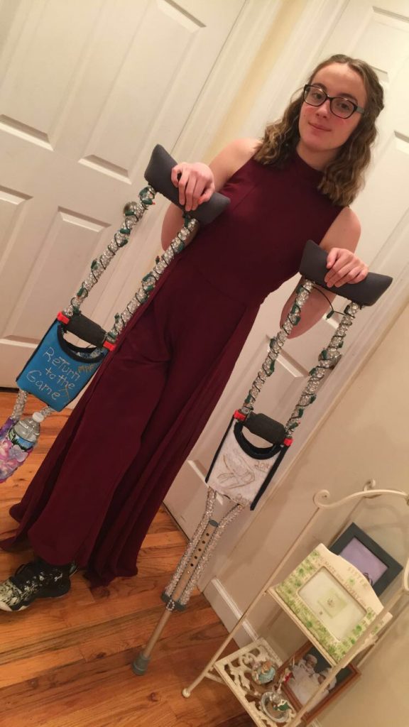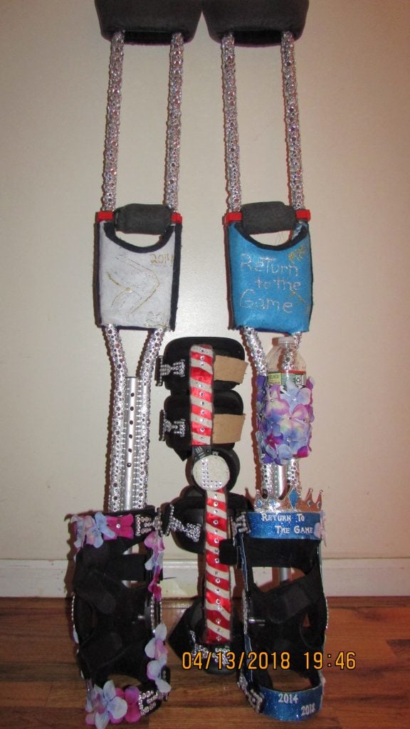 I also made an Instagram account just about my recovery. Each day I would update about how my knees were doing. I would update about my appointments and how everything went. I included all the ups and downs that I faced as well. Through my account I met so many people who had the same surgery and issue! I started decorating my crutches and braces to try to cheer me up. I put my username (ReturnToTheGame) on my brace and the pockets of my crutches. It was something to remind me to never give up and to remember what my goal is. Everyone at the office loved my bedazzled crutches and glittery braces. They also loved my “patella squad” shirt that me and the other people, who went through the same surgery as I, created. The doctor appointments were the best and most of them were even funny! I have so many awesome stories from the appointments. Dr Shubin Stein was always nice, she listened, and made me laugh. Sarah, Simone, and all the nurses made each appointment even better! The truth is, I was that annoying patient that wondered when she could run, dance, play tennis, go rock climbing, etc... Dr. Shubin Stein’s answers were hilarious. (“That’s a hard no”)