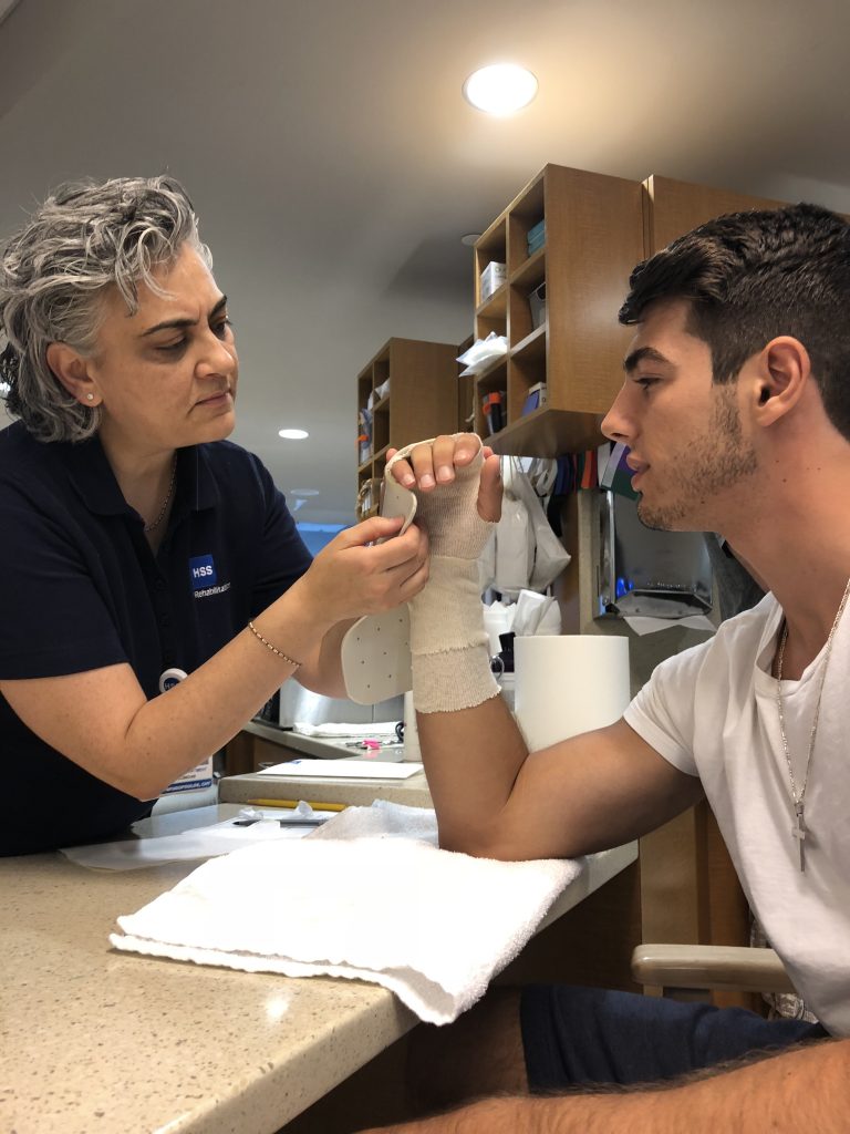 Senior year in high school for Ryan was sure to be an exciting one! A Varsity starter for an undefeated NJ football team and a key player on the Varsity basketball team. With a 4.0 GPA, Ryan was all set for his final year in high school. But during the first weeks of football preseason, Ryan collided with a teammate, fracturing a bone in his right hand. After rushing him to a walk-in urgent care for an x-ray, the doctor consoled him saying “your season is over before it even started”. It was a Thursday night and it was one of the few times I saw Ryan get emotional. He looked defeated. The next morning I called HSS. My mom had both hips replaced and a knee replaced by Dr Mark Figgie. I knew if Ryan was going to see the field his senior year that HSS was my best shot. I called the central number and was immediately put through to Dr Fufa’s office. Although she was out of town, they assured me that a resident doctor could evaluate Ryan for Dr. Fufa and get the ball rolling should he need surgery. Dr. Fu (Chief Resident) told us Ryan had a “boxer's fracture” and would need surgery for the hand to heal properly. By chance there was a cancellation and the surgery was scheduled 4 days later. This Saturday, just 30 days after surgery Ryan will play football! With a special “club cast” in place for 2 games, he was cleared to play without restriction. We are so thankful to the HSS team for getting Ryan back to his team! HSS is simply the best in orthopedics!