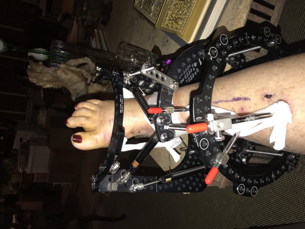 When I awoke from the surgery, I had an even larger external fixator on my leg. I was told this would have to stay on for several months, no weightbearing and ultimately (it turned out to be 5 months later) I would have to have ankle fusion. From this point on, Dr. Austin Fragomen was my doctor. Dr. Fragomen is an absolute gem and a rarity! He is a brilliant doctor who clearly is a trailblazer as well as an acknowledged expert in his field but he is also one of the kindest, most down-to-earth and empathetic doctors one could have the privilege of being treated by. Dr. Fragomen is approachable, always reachable and responsive, reassuring and spot-on in terms of what to expect, timelines and ultimate outcomes.