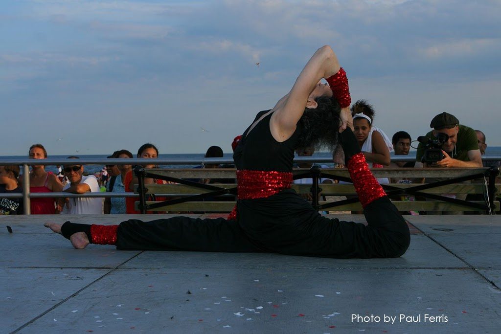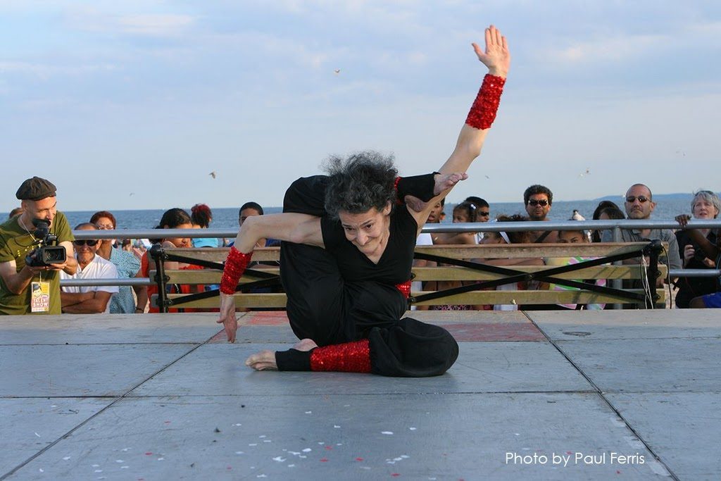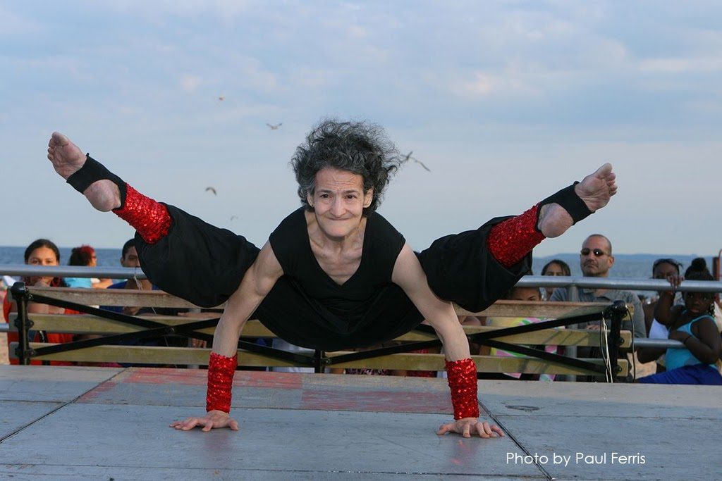 Amazing Amy: Eccentric Yoga Contortion Entertainer, life long presenter of advanced yoga as an entertaining and inspiring performing art, experienced arthritis in both hips.