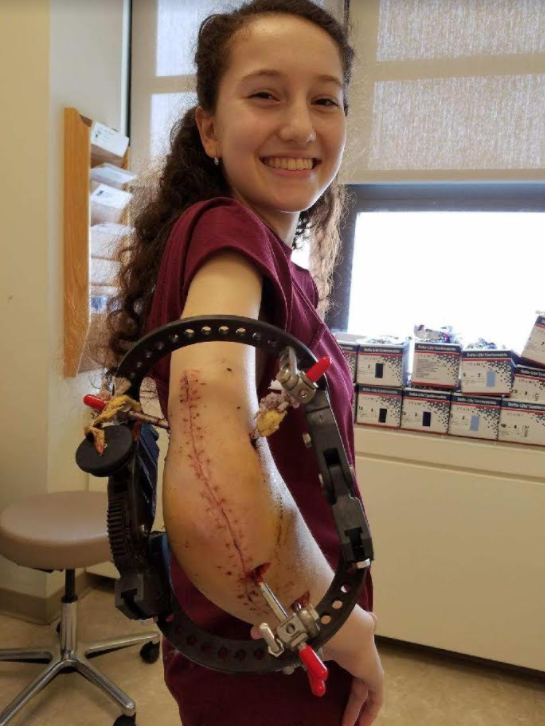 In October of 2016, I sustained a severe injury at gymnastics practice. I fractured my radial head, dislocated my ulna, and tore my annular ligament. A few months after my accident, I had surgery in an effort to help the alignment of my elbow. However, after the surgery I was unable to pronate my hand, flex my arm to ninety degrees, and extend my elbow to about forty-five degrees. My range of motion was so terrible that I struggled with putting my hair up in ponytail. After that surgery, my parents and I decided to go to Hospital for Special Surgery. There, I met Dr. Hotchkiss and his team. They said another operation was needed to address the resulting complications of the previous procedure. As a result, I was fitted with an external fixator. For the first time since my injury, I felt like things were finally getting better. I was determined to flex and extend my arm completely, but I still felt some pain in my elbow. Dr. Hotchkiss and his team felt another procedure was necessary to help alleviate my pain. The surgery was a success, and I went to therapy every week for six months. Thanks to my occupational therapist, John, I was able to move my arm in ways I had not been able to since my injury. Now, I am able to push in a chair, comb my hair, touch my shoulder, and wash my face. I do not think I was ever so happy to perform task as simple as touching my shoulder. My range of motion and comfort have tremendously improved. Though I am not able to go back to competitive gymnastics, I am glad that my arm moves freely without pain. My return to normal life could not have been possible without Dr. Hotchkiss, Kate, John, and the entire HSS team! Thank you for all that you have done for me.