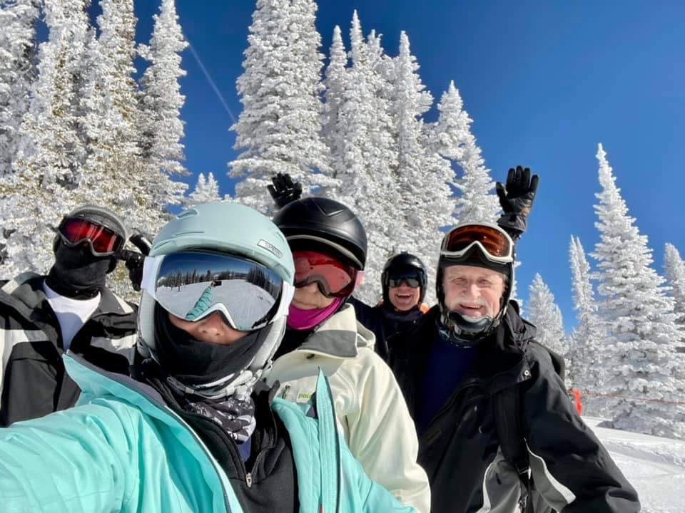 Attached are 4 post-op photographs. The first shows me successfully snow skiing 7 months after his first knee replacement. The second shows me about to successfully “stand-up” a parachute landing which I was doing in appropriate wind conditions also within 7 months of the first knee replacement. The third shows me at the top of a rappel down a rock face after a significant hike in Utah about 2 years after surgery. The fourth was taken last week showing me at right of picture while skiing successfully and without incident with friends in Colorado barely 5 months after surgery on knee #2.