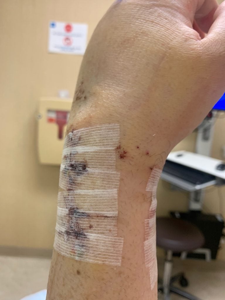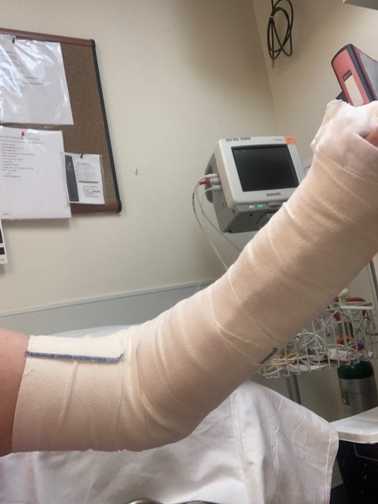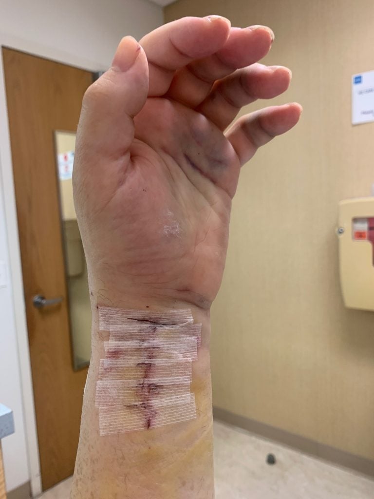 It all happened in a flash: I was biking on a warm Friday afternoon before Labor Day and all of a sudden I hit a pothole. I found myself lying in the street in agonizing pain with my left wrist tremendously swollen. At the emergency room, the doctors set my wrist somewhat in place and placed me in a cast up to my bicep. But they told me that I needed to have my wrist examined very soon (see photos 1, 2 and 3).