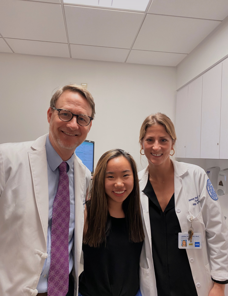 In June and December of 2019, I had right then left PAO surgeries. While recovering from the PAOs brought some of the most challenging experiences of my life, I was also able to experience triumphs I never thought were possible. After spending a year and a half with my wonderful physical therapist Michelle Cilenti I was able to progress from having to relearn how to bend and flex my feet to joining my school’s varsity track and field team as a distance runner and returning back to the ice. She was instrumental in my recovery. The aqua therapy and special post-surgery massages along with physical therapy I was able to access at HSS were key to my successful rehabilitation.