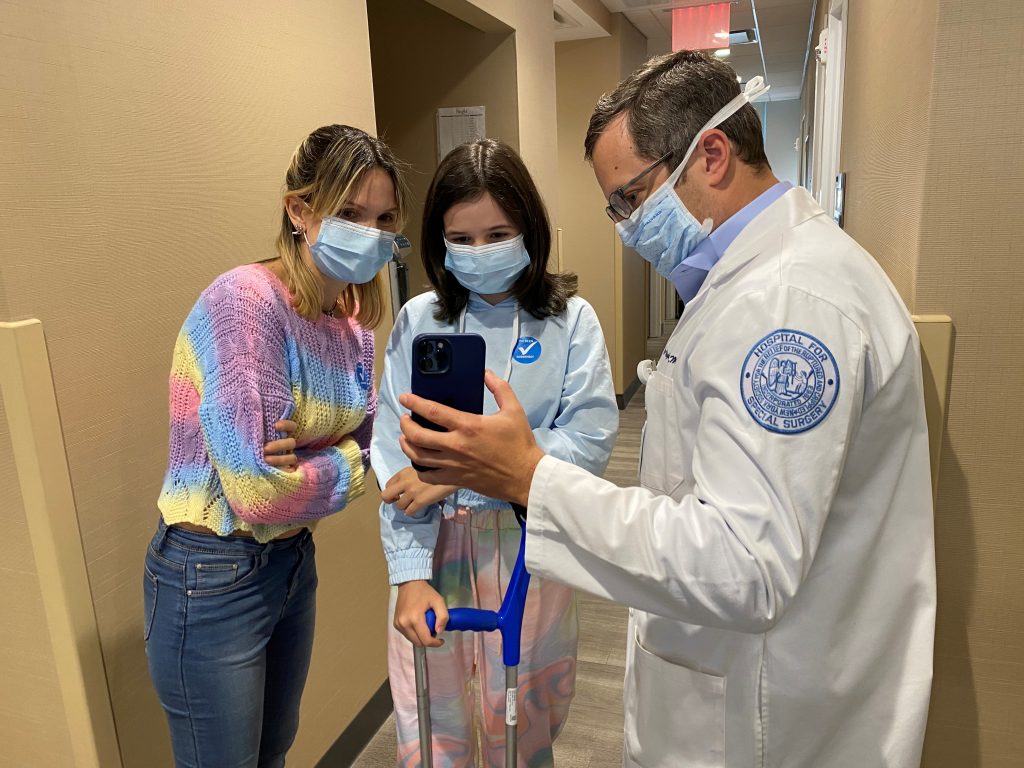 Vimos un programa de televisión en español donde una niña sufría un caso parecido al mío y había mejorado mucho, así que investigamos hasta dar con el nombre del médico que la operó y fuimos a conocerlo a la otra punta del país (en España), y él a su vez nos habló de un prestigioso cirujano colega suyo llamado Dr. Vigdorchik que trabajaba en el hospital HSS de Nueva York, uno de los mejores y más reconocidos hospitales del mundo. Considerando la complejidad de mi caso debido a mi edad, HSS y el Dr. Vigdorchik serían los más adecuados para realizar la cirugía de reemplazo en mi cadera derecha, por lo que no dudó en ponerse en contacto con su colega y presentarle mi caso.