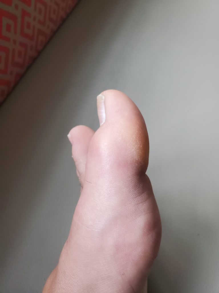 My foot issues started in April of 2020. Initially my big toe began hurting as if something was rubbing on it, but within a few days my big toe became enlarged. This was extremely painful and made sleep impossible while at the same time forcing me to lose time at my job as I work outside as an arborist, which requires me to be extremely active. I saw several podiatrists over the next few months who said I had gout as well as fractures in several toes, neuromas, and floating bone fragments that were extremely small. I was prescribed several harsh medications, which caused my fingers, toes, and joints new pains and tingles. My big toe was given numerous shots of cortisone which only lasted 7-21 days. I was subjected to countless x-rays, MRIs with and without contrast with no real outcome.