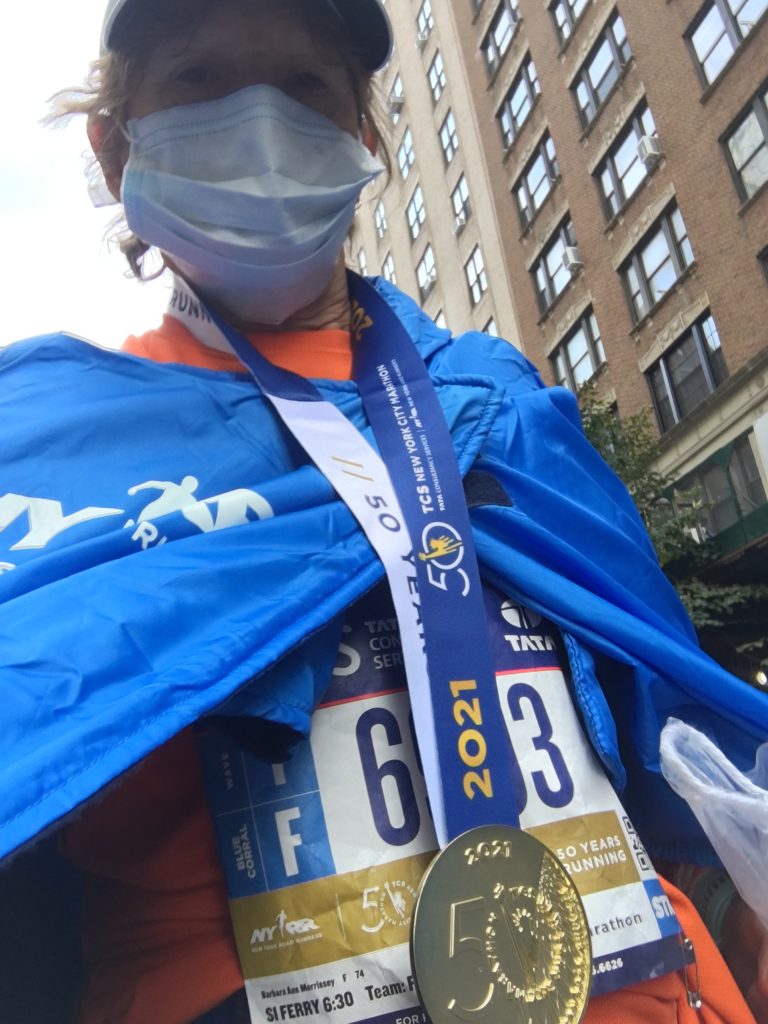 I have been enjoying running for 43 years. But I had a cross-country (XC) skiing accident when I was 30, tearing ACL, MCL, etc. After rehabbing, I was able to continue running. At 73, my knee was very painful, and after NYC Marathon was cancelled in 2020 I decided I would finally have a total knee replacement (TKR) done. I discussed my hope of continuing running with Dr. John Wang, going over risks & possibilities. He was very attentive to my hopes & expectations, and I felt he had an understanding of a long time runner’s desire to continue to run. And great hope of being able to run my 28th NYC Marathon with a TKR. I had knee replacement in August 2020. I worked hard in physical therapy (PT), then continued with a personal trainer to be sure I did everything possible to strengthen and safely progress to running. I am so thankful & happy to say I just ran my 28th NYC Marathon, on November 7, 2021! My knee felt great! I finished in 5:36:31, placed 11th in my age group. As a member of Fred’s Team/ MSKCC, I raised $10,200.94, doing my run, for Aubrey Pediatric Cancer Research Foundation at Memorial Sloan-Kettering Cancer Center. Thankful for Dr. Wang & staff at HSS for making it possible for me to continue to enjoy my love of running, and most important, for the 28th year raising funds for MSKCC cancer research by running the NYC Marathon. I am so grateful that HSS has helped me to keep on enjoying running.