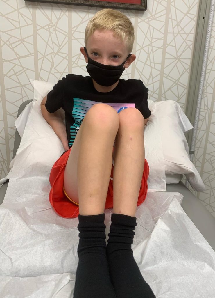 During one of our regular check-in appointments with Dr. Rozbruch, he proposed a few options for us to consider – have one surgery to fix Reid’s discrepancy closer to his teen years, or split the surgery into 2 phases (a tibia lengthening at early elementary age and a femur lengthening as a pre-teen). Without judgment or force, Dr. Rozbruch explained the pros and cons, what he liked and disliked as a surgeon about both options, and what he liked and disliked about both options as a parent. He gave us time to consider the options; we didn’t have to make an immediate choice right then and there, which was so helpful to our decision-making process. We chose to split the surgery into 2 phases, with the first surgery taking place at age 5 and the second surgery anticipated to take place at age 12.