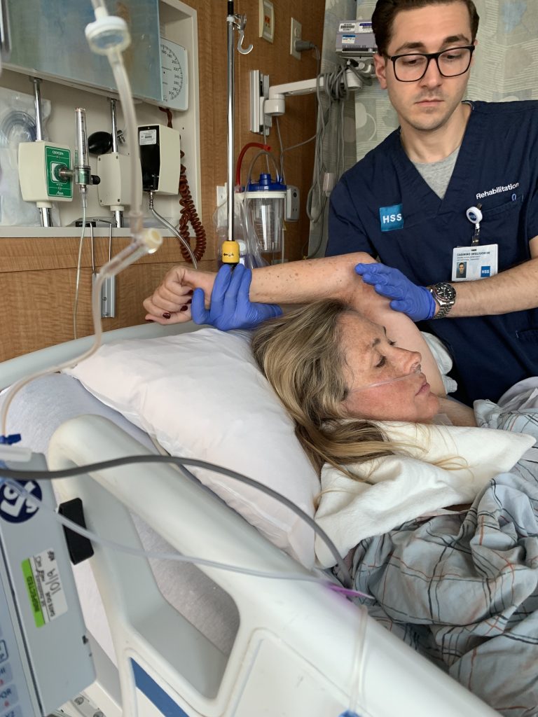 A year into rheumatological treatment at HSS, on a dark winter evening in early December 2018, I was out riding my horse when I lost control of her on a country road. I suddenly found myself out of control in oncoming traffic with no ability to regain control. In that last second, when I could see the eyes of the driver of the truck that I was about to collide with, I made a split-second decision to jump to save my own life, falling from a high height at a high speed. When I struck the icy pavement, my left arm was torn away from my body resulting in a crippling injury of broken bones, torn ligaments, muscles, and nerves. I felt hopeless and scared when I was told that no trauma surgeon in the state of CT could repair my arm and it was easier to remove it. I was in a rural hospital alone, and I was ready to give up on my life.