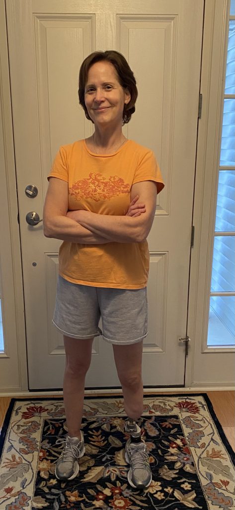 I’ve never felt that my new prosthesis prohibits me from doing anything. Everything I want to do I do. Four months post-surgery I started golfing 18 holes. I love not having to remove my prosthesis to wipe down my sweaty nub numerous times while golfing. Five months post-surgery I hiked over very rocky terrain in the Smokey Mountains. I work out on my rowing and elliptical machines and it’s so wonderful not having the bulk of a liner, socks, a sleeve and socket behind my knee.