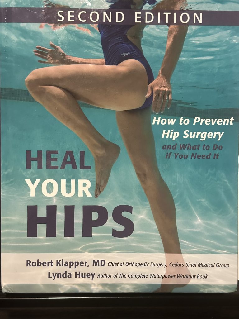 For patients who may want an extra boost to heal their hips post op, and prepare for surgery pre op, I used a pool hip physical therapy program taught in a book titled “Heal Your Hips”, written by an HSS trained orthopedic surgeon, Robert Klapper, MD, and his pool workout therapy coauthor, Linda Huey.