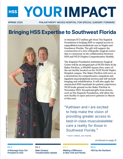 Donations to HSS power life-changing orthopedic and rheumatologic care and leading research. Your support helps us find better treatments for musculoskeletal conditions, which affect more than one out of every two adults in the US and nearly 75% of those age 65 and over.